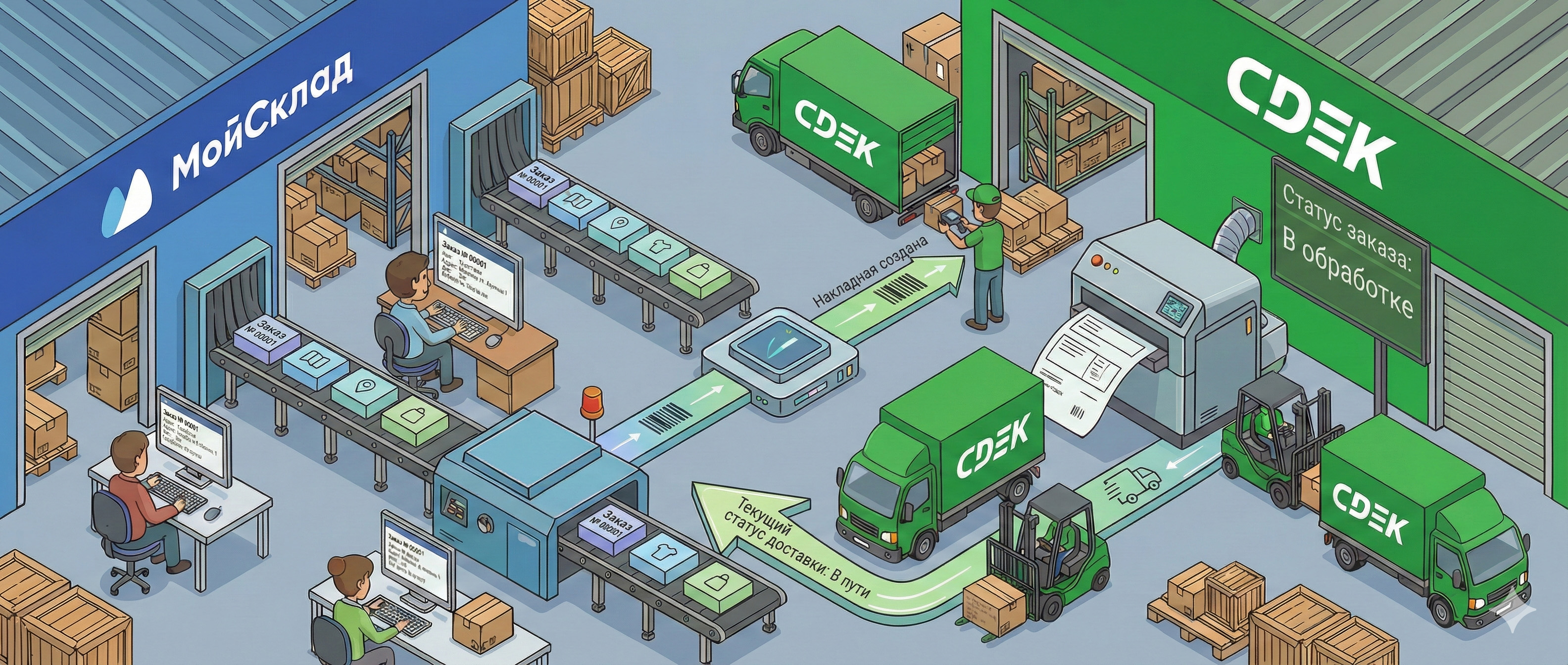 Позволяет быстро оформлять накладные СДЭК в МоемСкладе